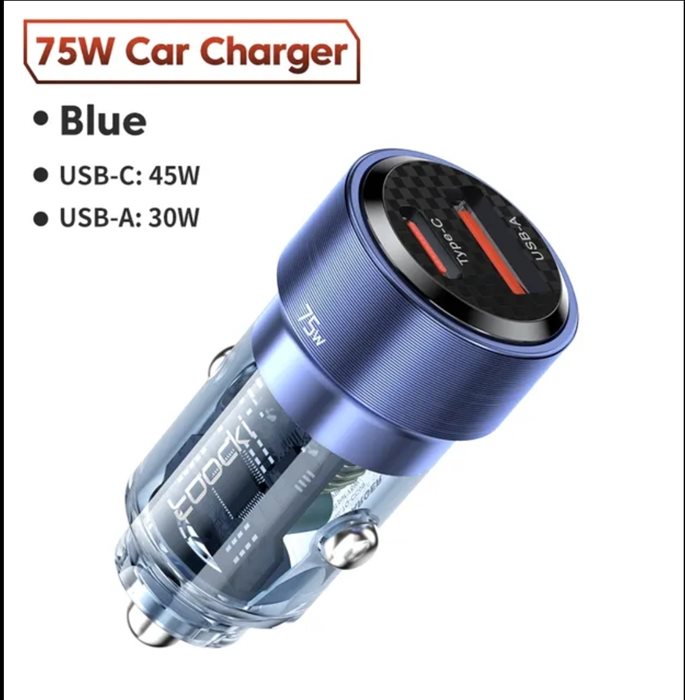 ראש מטען לרכב עם 2 יציאות TYPE C + USB תעינה מהיר 75W