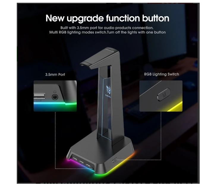 רכזת RGB + יציאה לאוזניות/ מיקרופון + מעמד אוזניות - מבית ONIKUMA דגם ST-2