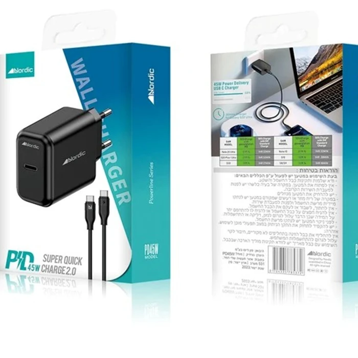 מטען קיר מהיר 25W PD עם כבל - Type-c Type-c