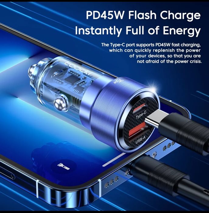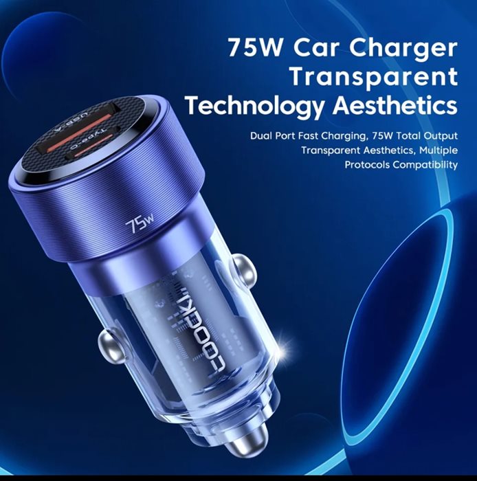 ראש מטען לרכב עם 2 יציאות TYPE C + USB תעינה מהיר 75W