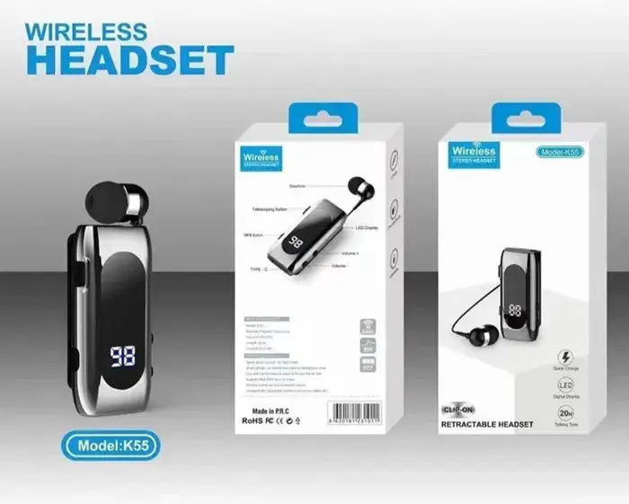 אזניה אלחוטית דיבורית בלוטוס עם חוט חוזר K55