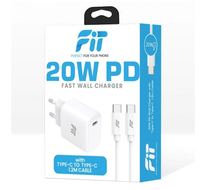 מטען קיר PD 20W עם כבל טייפ-סי לטייפ-סי - חברת FIT באריזה מהודרת