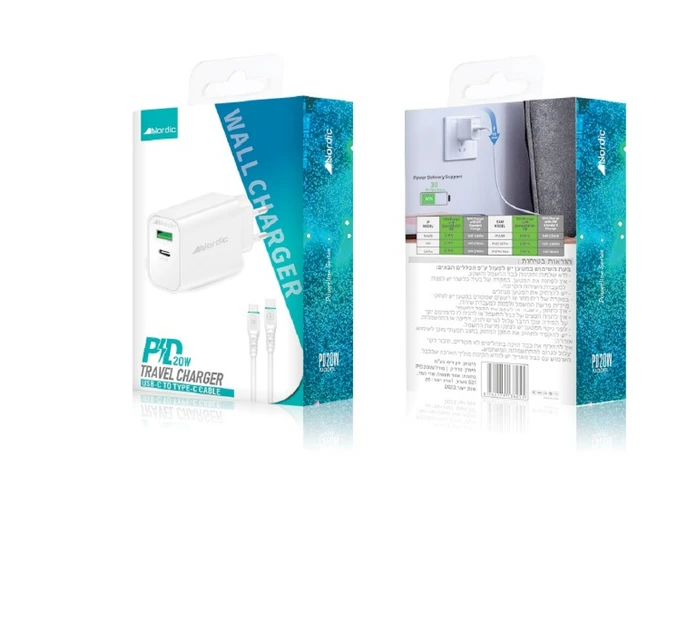 מטען בית מהיר PD 20W עם כבל טייפ-סי