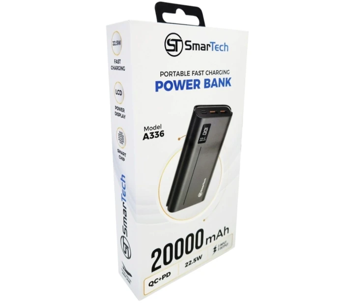מטען נייד 20,000 מיליאפר עם צג סוללה וטעינה מהירה 22.5W - דגם A336 חברת SmarTech