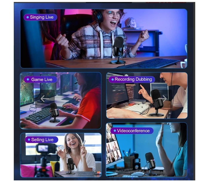 מיקרופון סטודיו עם ליבת קונדנסר מתקדמת, סינון רעשים חכם ודגם קליטה סופר-קרדיואידי לבידוד קול מושלם. מושלם לסטרימינג, הקלטות ושידורים.