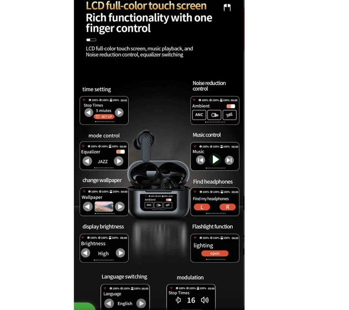 אוזניות פרימיום אלחוטיות עם מסך מגע צבעוני חכם, המציעות איכות שמע יוצאת דופן בשילוב טכנולוגיית ביטול רעשים מתקדמת. עם דרייבר טיטניום חדשני, חיבור Bluetooth 5.4 מהיר, ומגוון תכונות חכמות - האוזניות מספקות חווית האזנה מושלמת למוזיקה, שיחות ומשחקים.