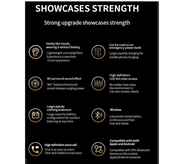 אוזניות TWS YW08 בעברית - מסך חכם עם Black Technoligy