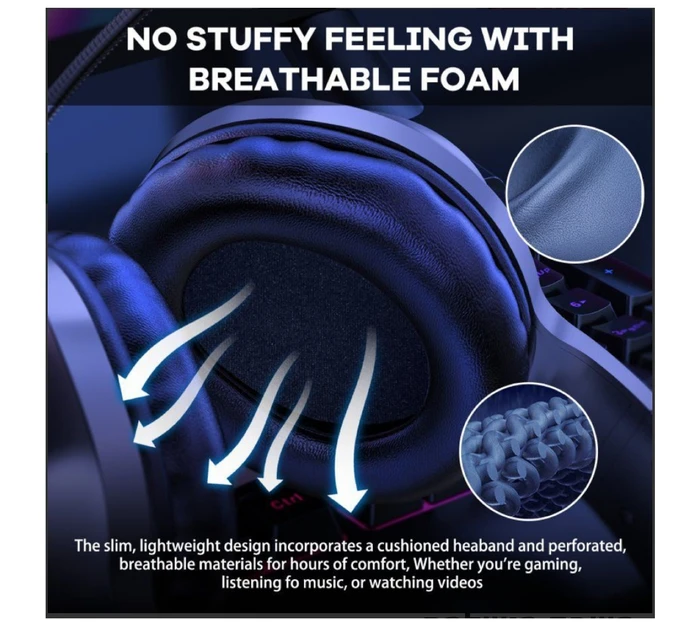 אוזניות גיימינג מתקדמות המשלבות דרייברים של 40 מ"מ לסאונד סטריאו איכותי, תאורת RGB מרהיבה, ומיקרופון מתקדם לחווית משחק מושלמת.